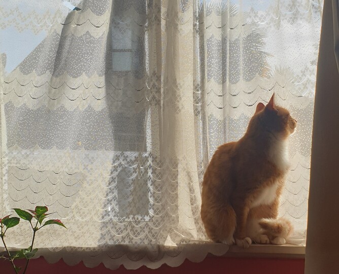 Snuggles with my cat. A warm and playful welcome into a new day as the smell of coffee brews in the kitchen.